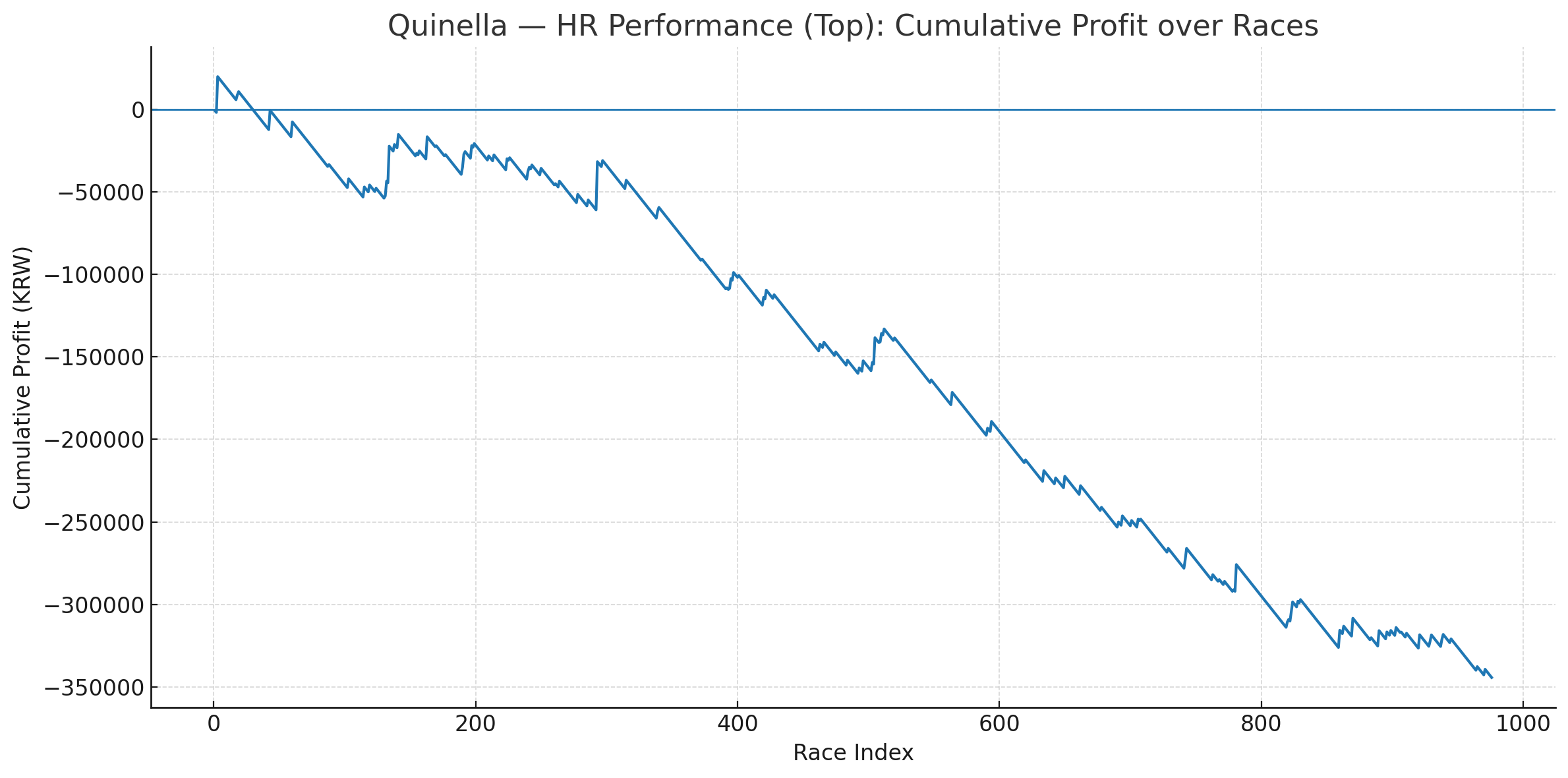 이 글의 목적은 마사회 공개 API(서울·부산경남·제주)에서 수집한 경마 데이터를 바탕으로 각 경주의 우승마 또는 Top-3 를 예측하고, 실제 승식별 배팅 시뮬레이션으로 수익/손실을 검증하는 것입니다.